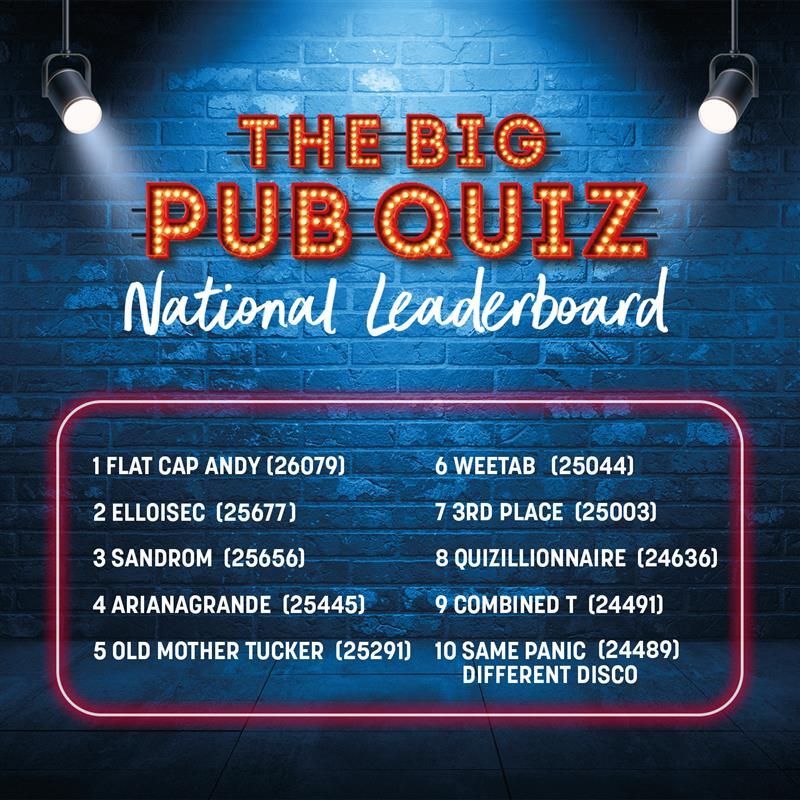 The Big Pub Quiz hosted by Paddy McGuinnessHas now come to an end!